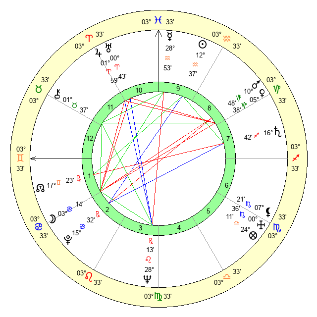 | Jupiter | 1 Aries 58 | 11 Gemini 16 | 24 Aries 23 |
