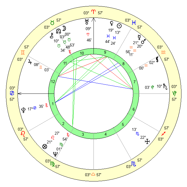 | Venus | 19 Pisces 45 | 10 Aries 41 | 16 Cancer 17 |