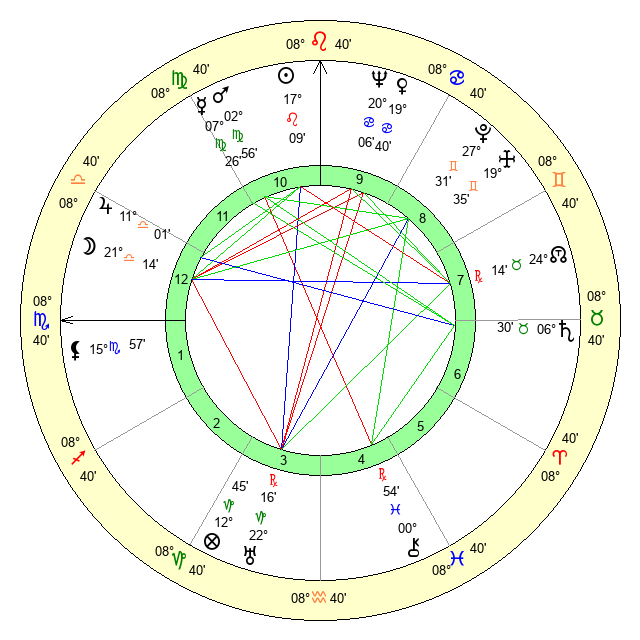 | Mercury | 7 Virgo 27 | 4 Leo 16 | 22 Sagittarius 17 |