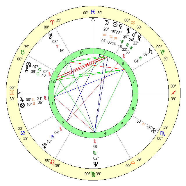 | Venus | 8 Aquarius 25 | 26 Pisces 24 | 6 Gemini 21 |