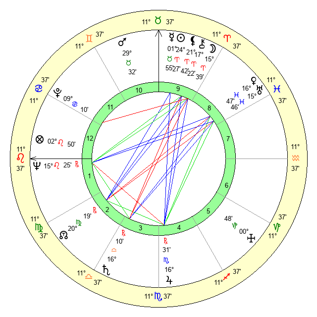 | Sun | 24 Aries 27 | 25 Aries 44 | 2 Leo 25 |