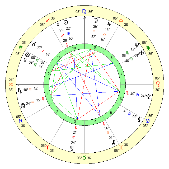 | Neptune | 12 Virgo 8 | 29 Pisces 32 | 11 Virgo 24 |