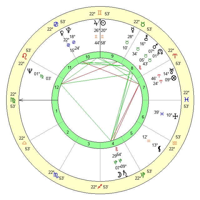 | Venus | 22 Cancer 16 | 6 Taurus 35 | 8 Scorpio 23 |