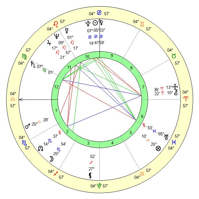 | Moon | 25 Scorpio 54 | 6 Leo 16 | 0 Libra 35 |