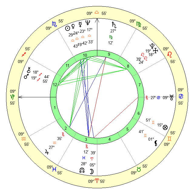 | Sun | 29 Libra 43 | 0 Scorpio 32 | 15 Capricorn 34 |