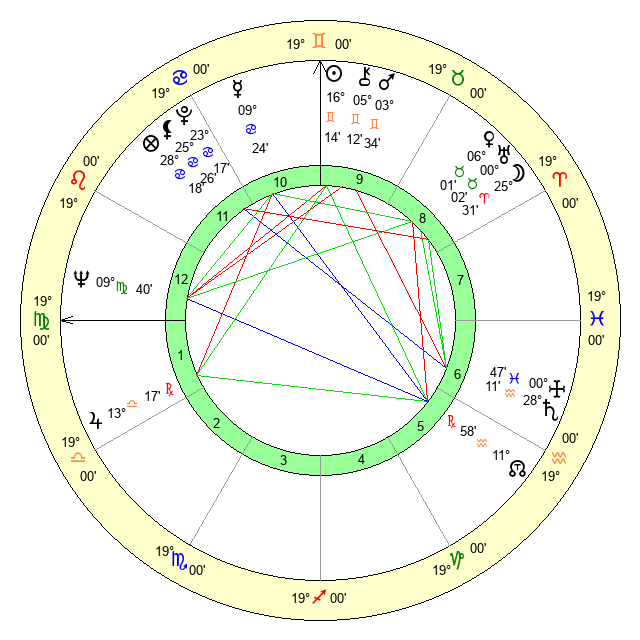 | Sun | 16 Gemini 14 | 17 Gemini 12 | 13 Virgo 23 |