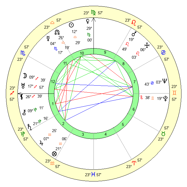 | Venus | 29 Virgo 0 | 21 Virgo 6 | 3 Pisces 21 |