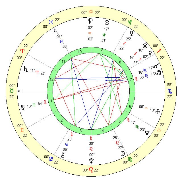| Mars | 17 Scorpio 16 | 29 Cancer 9 | 7 Capricorn 51 |