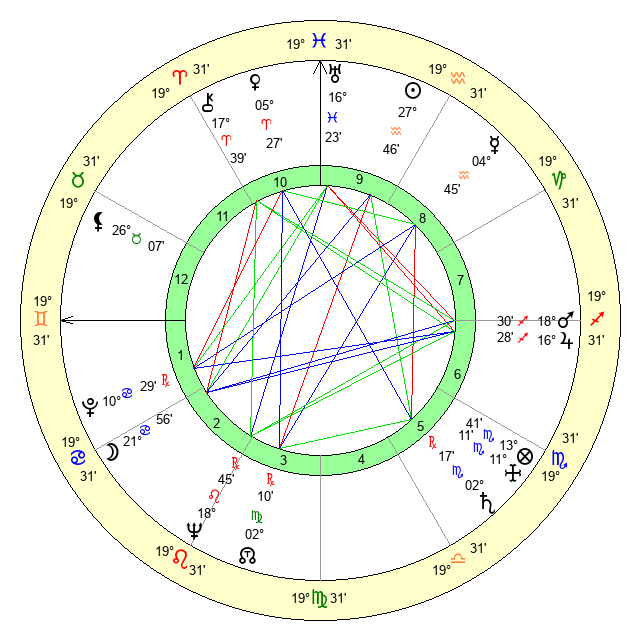| Saturn | 2 Scorpio 54 | 19 Pisces 15 | 27 Libra 3 |