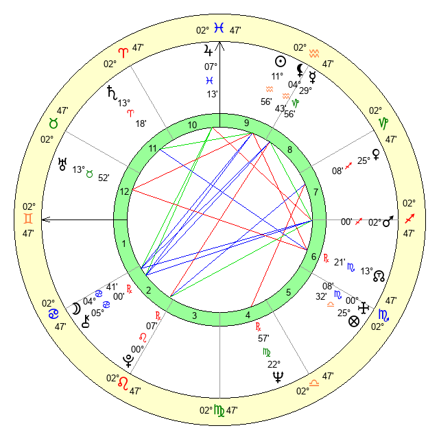 | Jupiter | 7 Pisces 11 | 11 Gemini 17 | 27 Pisces 20 |