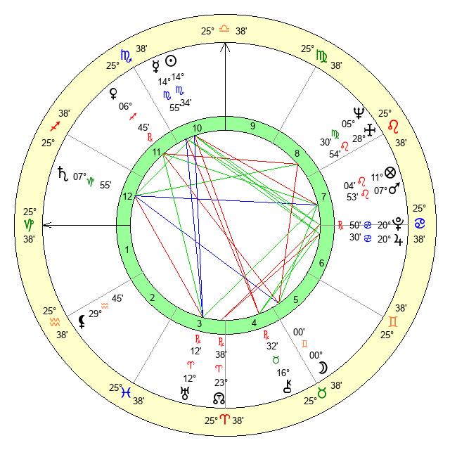 | Neptune | 5 Virgo 31 | 29 Pisces 39 | 4 Virgo 47 |