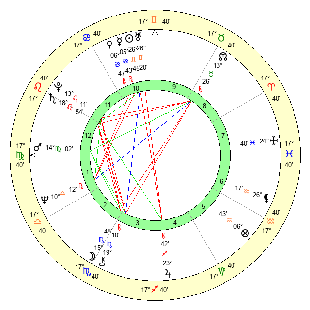 | Moon | 15 Scorpio 44 | 18 Pisces 5 | 5 Virgo 7 |