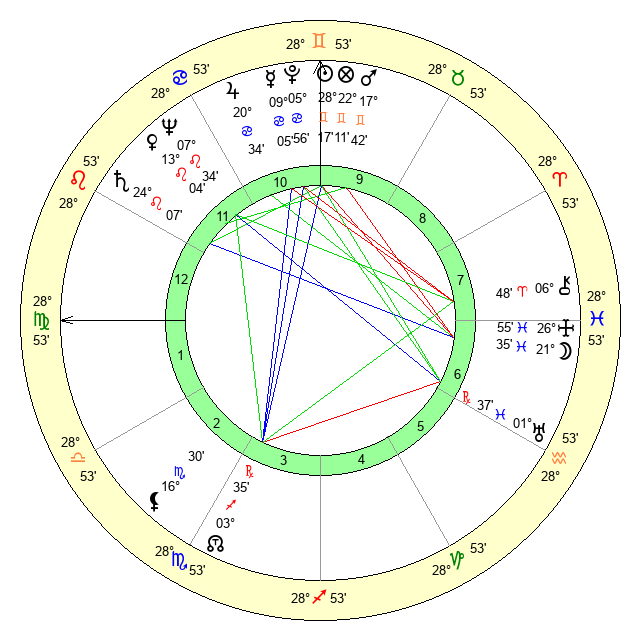 | Sun | 28 Gemini 17 | 29 Gemini 37 | 10 Libra 24 |