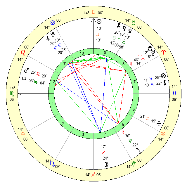 | Sun | 10 Gemini 13 | 11 Gemini 27 | 10 Virgo 13 |