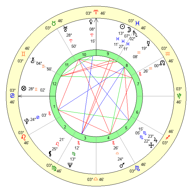 | Sun | 13 Pisces 12 | 14 Pisces 22 | 11 Gemini 13 |
