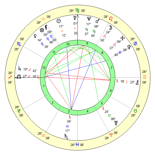 | Moon | 24 Leo 46 | 7 Gemini 2 | 20 Scorpio 42 |
