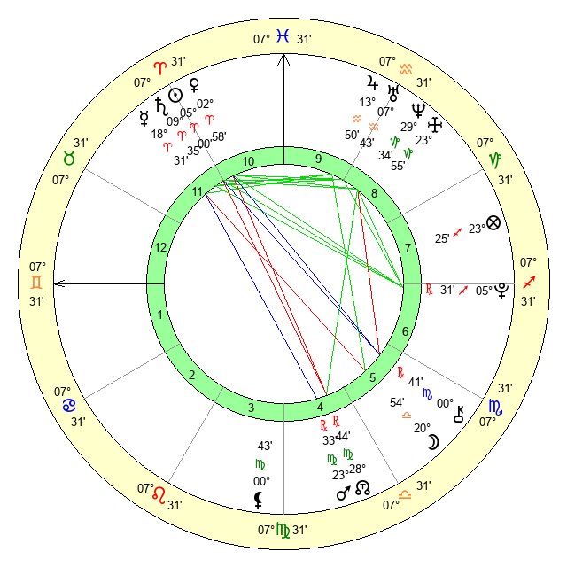| Moon | 20 Libra 58 | 13 Aquarius 15 | 29 Libra 54 |