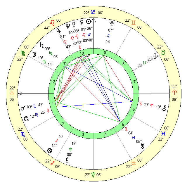 | Jupiter | 21 Leo 31 | 9 Cancer 2 | 13 Virgo 1 |