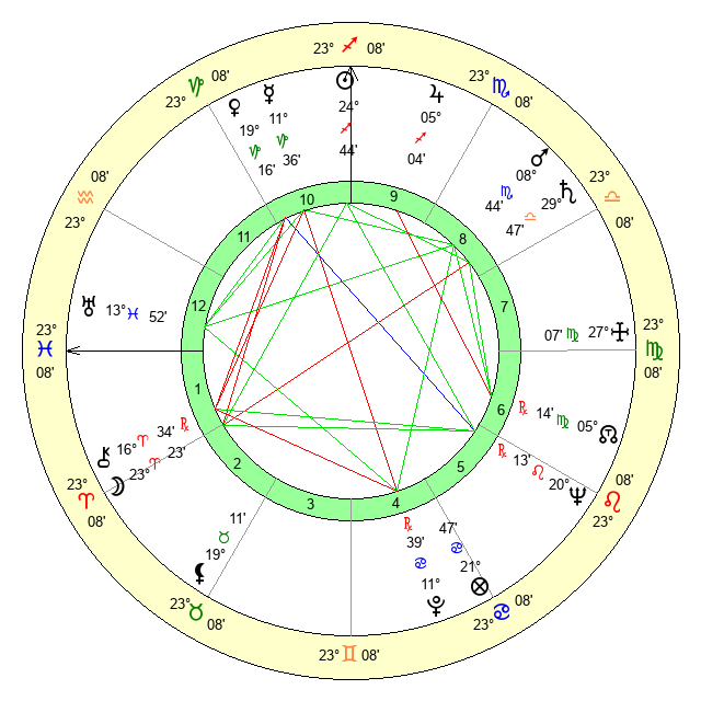| Saturn | 0 Scorpio 21 | 25 Pisces 24 | 1 Scorpio 15 |