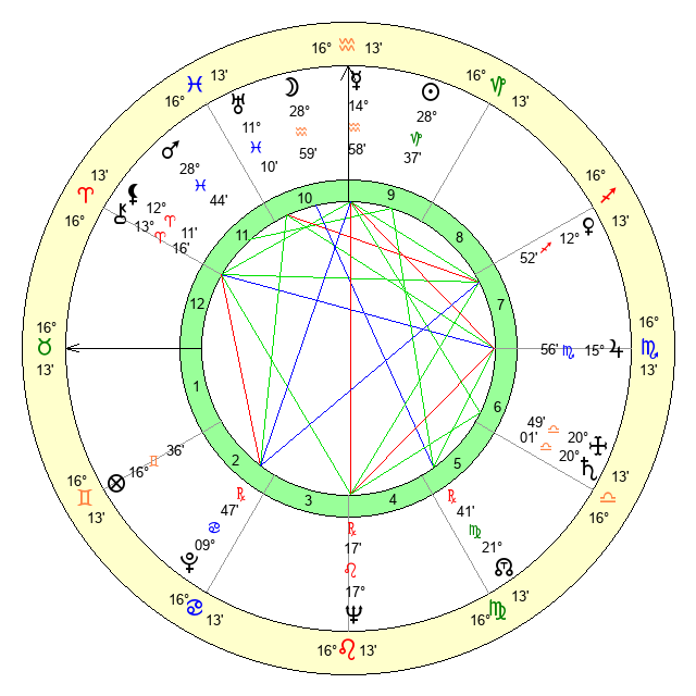| Neptune | 17 Leo 16 | 27 Pisces 38 | 15 Leo 22 |