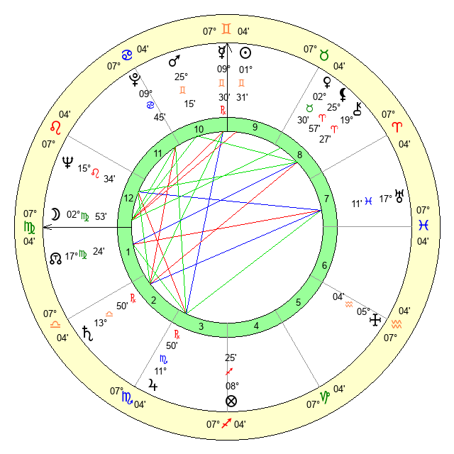 | Sun | 1 Gemini 32 | 2 Gemini 49 | 9 Virgo 11 |