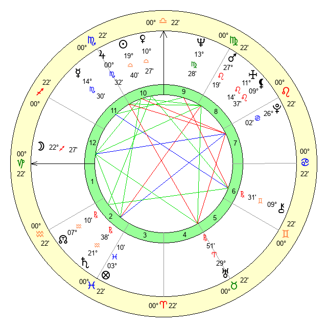 | Moon | 22 Sagittarius 25 | 19 Cancer 52 | 2 Taurus 0 |