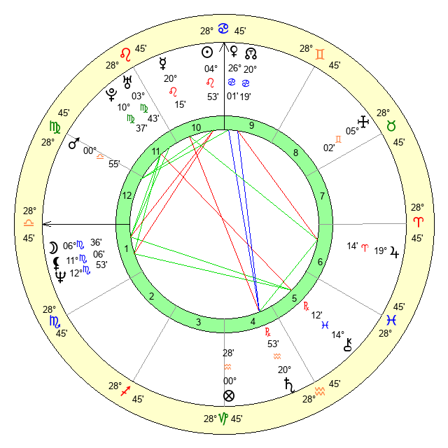 | Moon | 6 Scorpio 43 | 23 Virgo 28 | 5 Aquarius 54 |