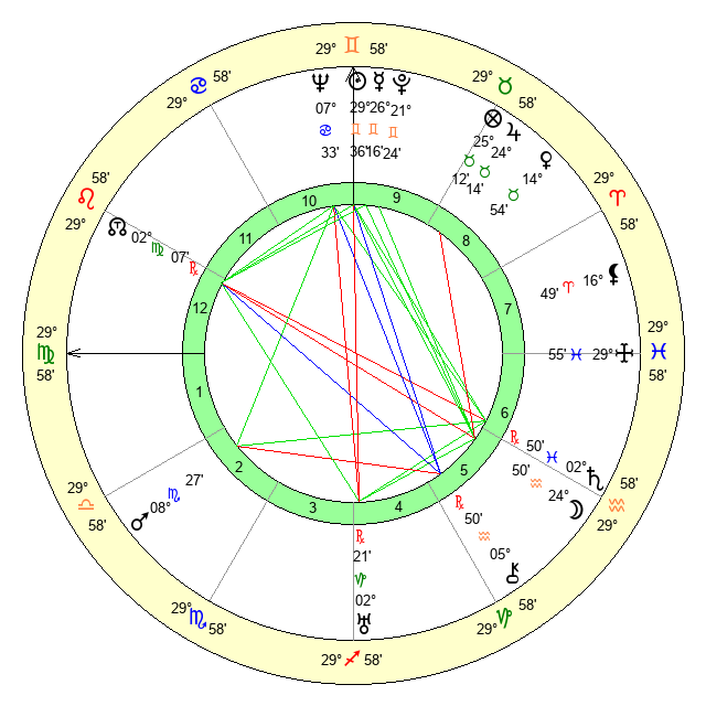 | Pluto | 21 Gemini 25 | 3 Aquarius 19 | 22 Gemini 37 |