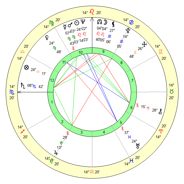 | Mercury | 7 Virgo 44 | 6 Leo 39 | 24 Sagittarius 31 |