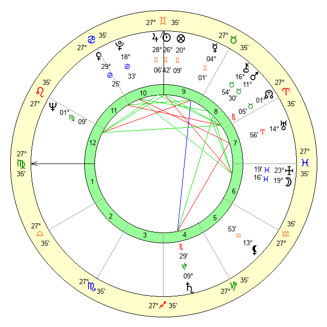 | Sun | 26 Gemini 43 | 27 Gemini 42 | 27 Virgo 58 |
