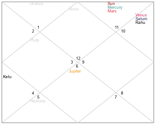 | Rahu | 19 Aquarius 6 | 29 Pisces 1 | 14 Aquarius 16 |