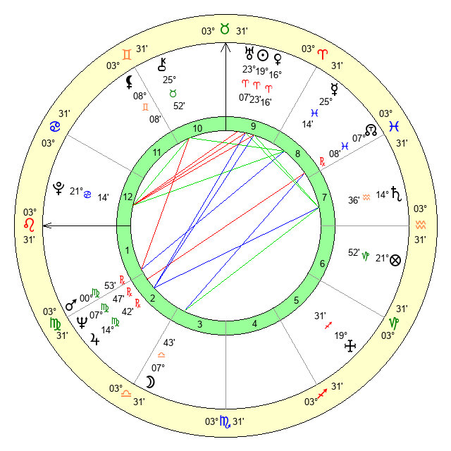 | Venus | 16 Aries 17 | 24 Pisces 52 | 9 Leo 20 |