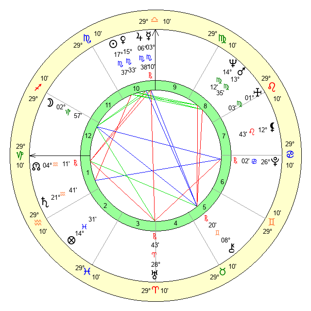 | Neptune | 14 Virgo 12 | 29 Pisces 36 | 13 Virgo 49 |