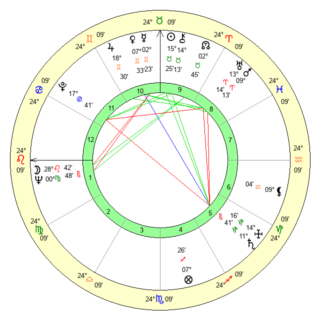 | Moon | 28 Leo 49 | 10 Virgo 57 | 19 Aquarius 7 |