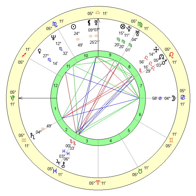 | Sun | 24 Libra 50 | 25 Libra 34 | 28 Sagittarius 20 |