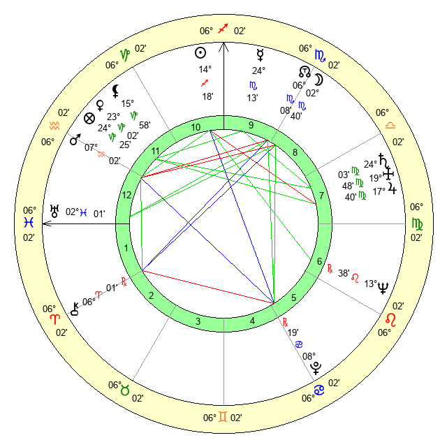 | Saturn | 24 Virgo 43 | 25 Pisces 7 | 21 Virgo 28 |