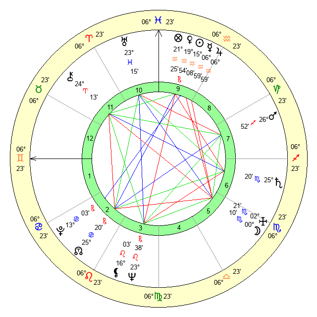 | Saturn | 25 Scorpio 49 | 17 Pisces 46 | 23 Scorpio 17 |