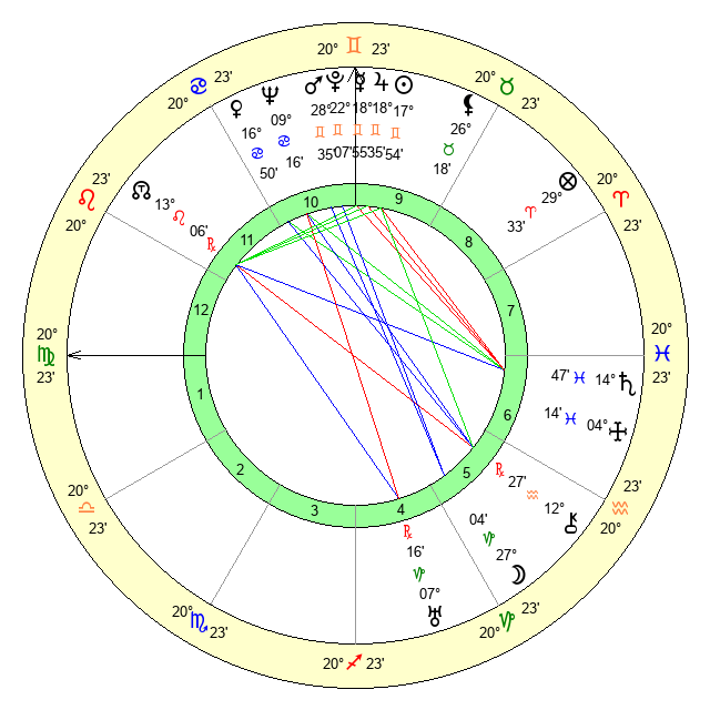 | Mars | 28 Gemini 36 | 25 Leo 46 | 15 Virgo 16 |