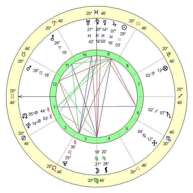 | Sun | 29 Aquarius 3 | 0 Pisces 17 | 5 Gemini 24 |