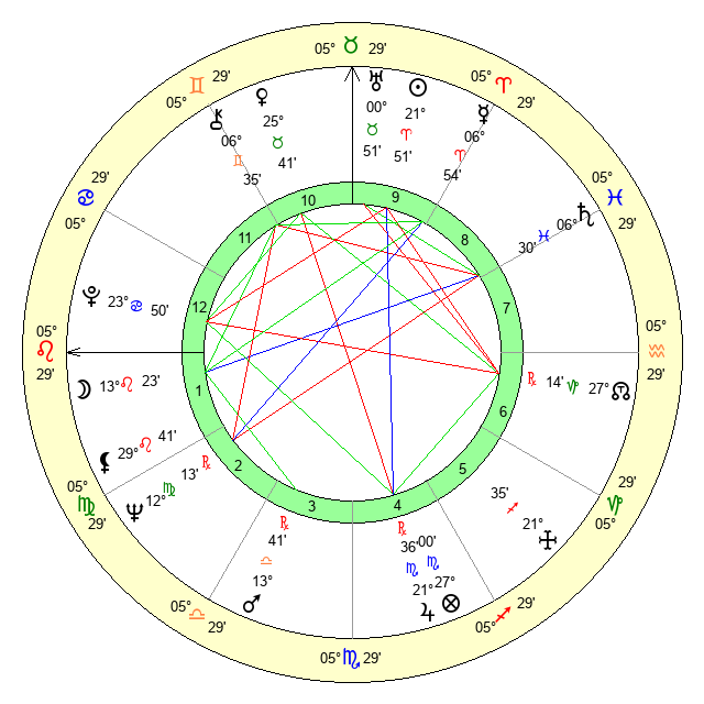 | Moon | 13 Leo 21 | 19 Libra 36 | 20 Scorpio 21 |