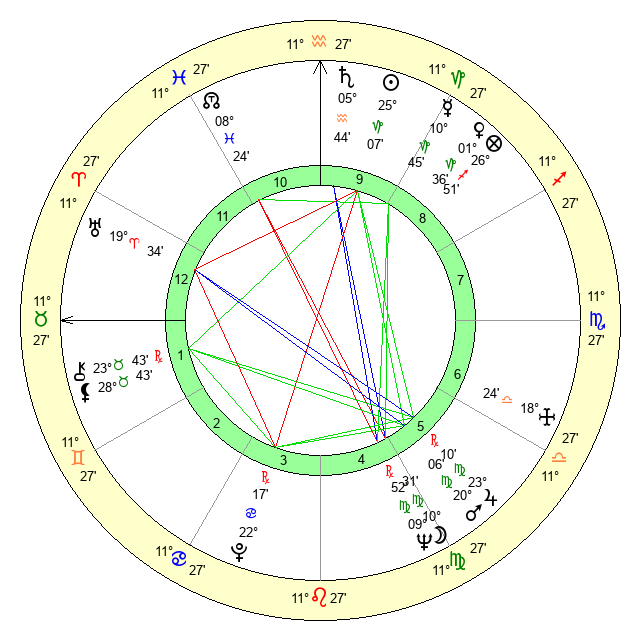 | Neptune | 9 Virgo 52 | 27 Pisces 33 | 7 Virgo 39 |