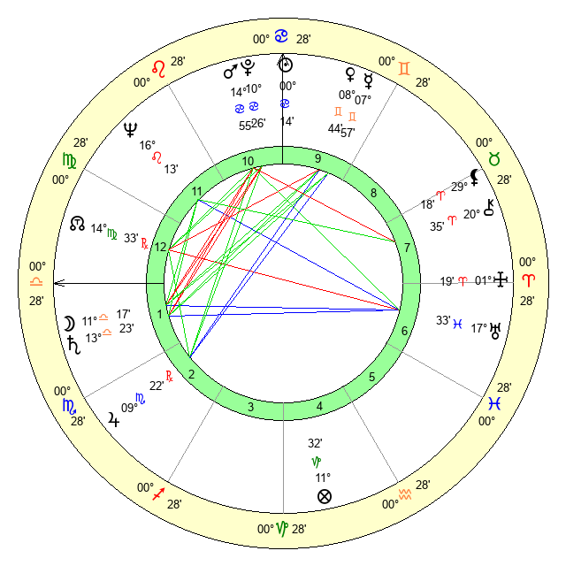 | Sun | 0 Cancer 14 | 1 Cancer 31 | 8 Libra 28 |