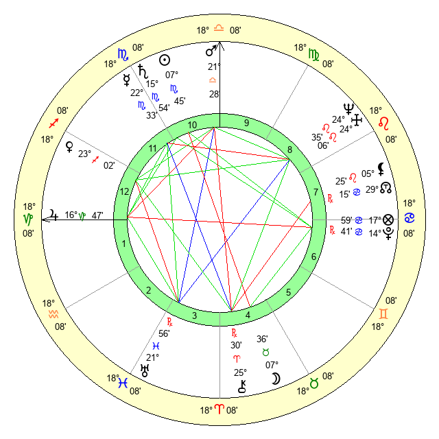 | Saturn | 16 Scorpio 23 | 25 Pisces 42 | 26 Scorpio 0 |