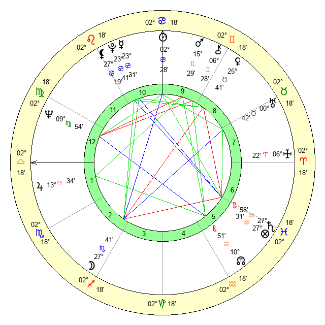 | Moon | 27 Scorpio 37 | 23 Gemini 25 | 7 Aries 7 |
