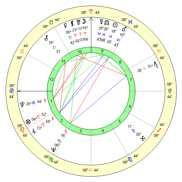| Mars | 10 Pisces 44 | 18 Cancer 6 | 21 Taurus 36 |