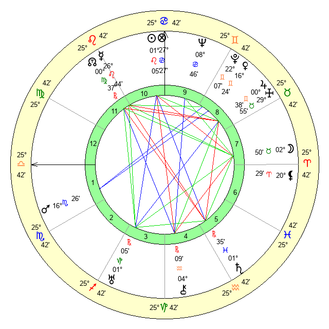 | Mars | 16 Scorpio 25 | 21 Virgo 51 | 2 Aquarius 39 |