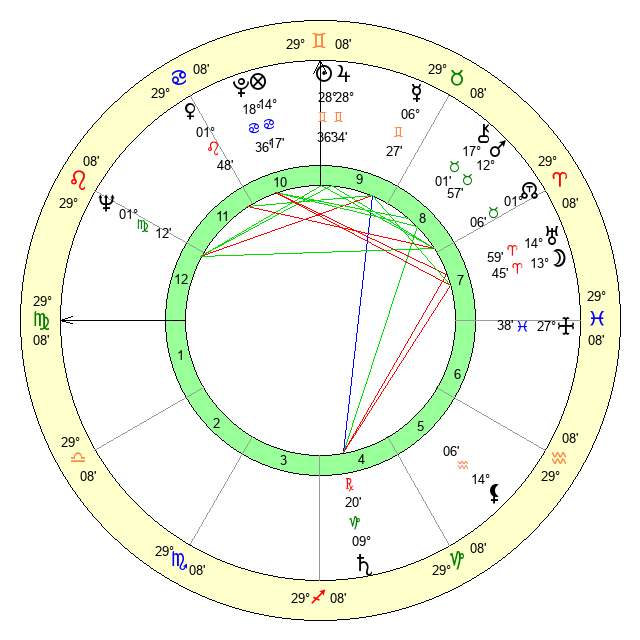 | Sun | 28 Gemini 37 | 29 Gemini 37 | 29 Virgo 56 |