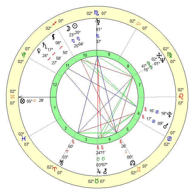 | Moon | 23 Scorpio 24 | 26 Leo 17 | 7 Gemini 46 |