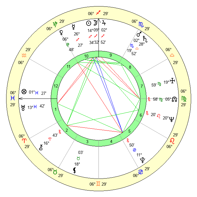 | Saturn | 29 Libra 26 | 25 Pisces 8 | 1 Scorpio 52 |
