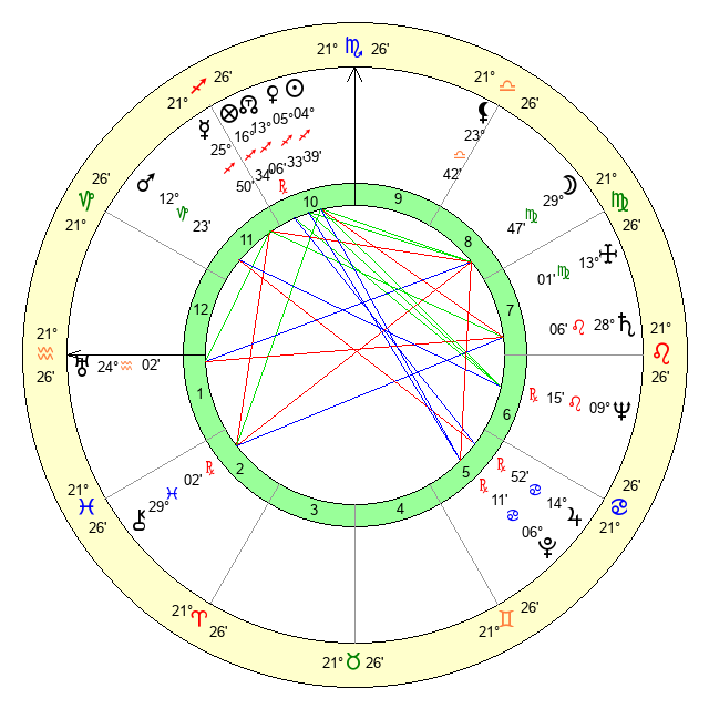 | Moon | 29 Virgo 50 | 28 Aquarius 44 | 0 Virgo 44 |